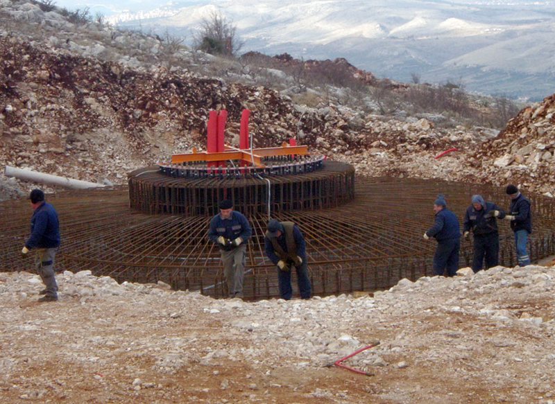 Ponosni smo što možemo udovoljiti najzahtjevnijim zadacima ugradnje armature. Temeljna ploča za vjetroelektrane zahtjeva preciznu izradu zbog velikih opterećenja konstrukcije na temelj. Uspješno smo izveli sve zadatke u teškim vremenskim uvjetima Šibenskog i Senjskog zaleđa.